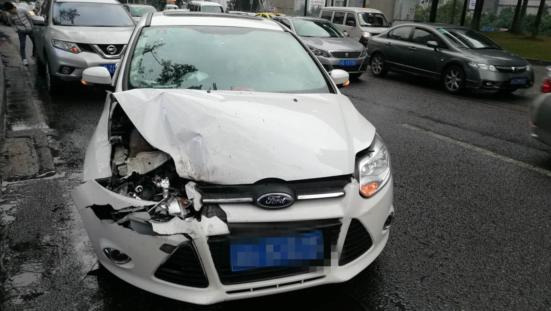 来自平安九龙坡的消息:2018年2月1日上午10许,九龙坡交巡警支队谢家湾大队接群众报警,称在袁家岗轻轨附近发生交通事故。到达事故现场后,民警发现,一辆白色小轿车与一辆灰色越野车发生激烈碰撞,两车受损严重,白色小轿车撞出气囊。