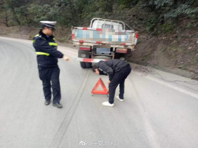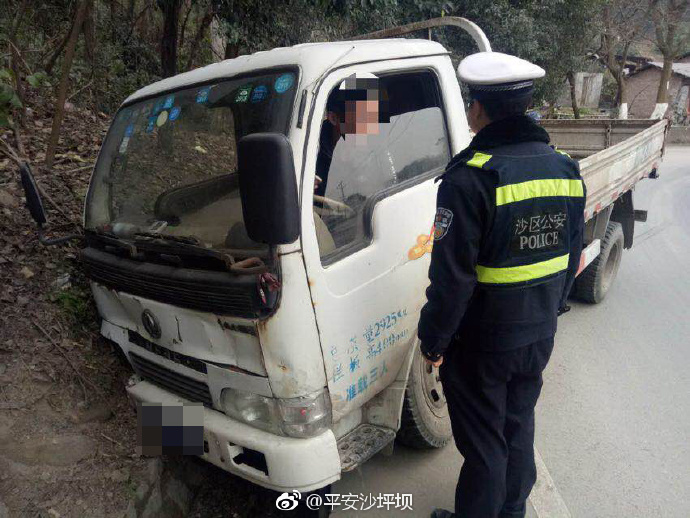 来自平安沙坪坝官微的消息:日前,王某开货车至歌乐山某转弯处时,因未及时避让一旁的摩托车,导致货车失控掉进了水沟中,好在并无人员伤亡。