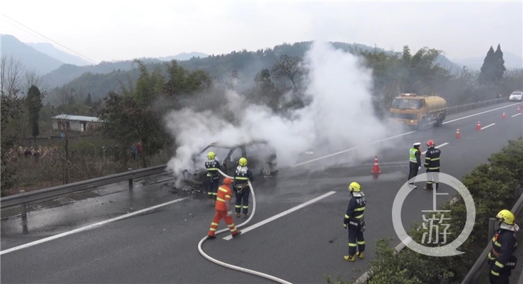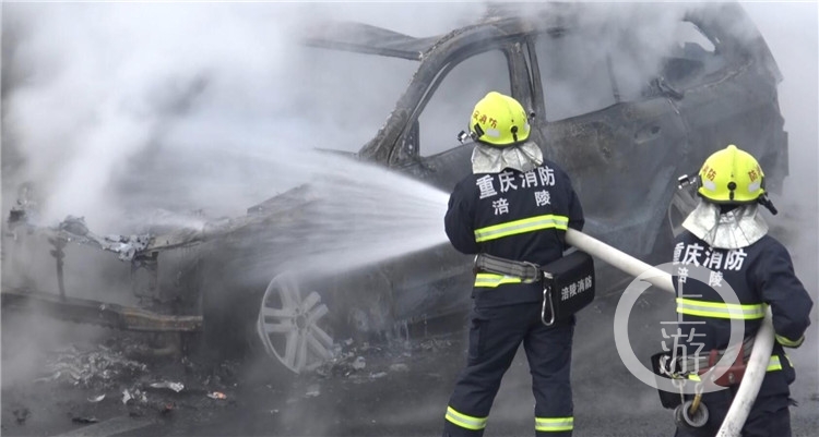 2月4日上午10时21分,重庆往涪陵方向沿江高速路上苏家沟大桥3公里处,发生一起SUV自燃事故。接到报警后,涪陵消防支队指挥中心立即调派辖区2个中队,4辆消防车,26名消防官兵前往处置。