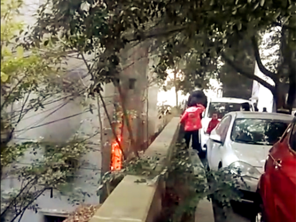 重庆一住户家中失火 空气中弥漫着焦糊味