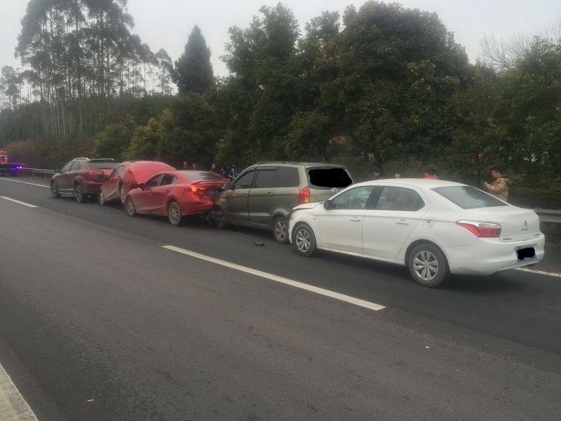 五辆轿车高速路上“叠罗汉” 都是跟车太近惹的祸