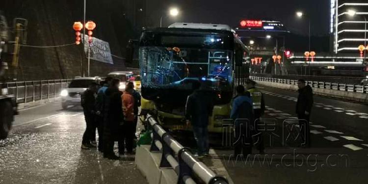 视界网消息,今(26)日晚八时许,一辆车牌为渝AS6303的公交车在行驶至江北区海尔路溉澜溪往五里店方向匝道口时,失控撞上了隔离带。