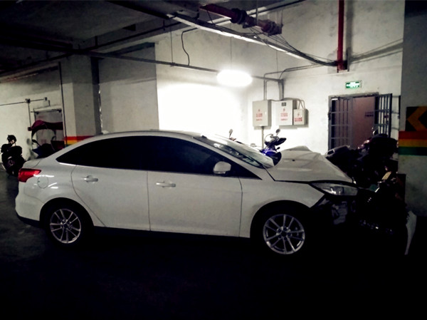 发布时间:2018-03-12 11:41:482018年3月9日,重庆江津有市民准备骑摩托车上班,下楼到荧鸿城一街区四号楼地下车库负一楼时,发现四号楼出入口处有一辆白色福克斯撞上车库方柱。