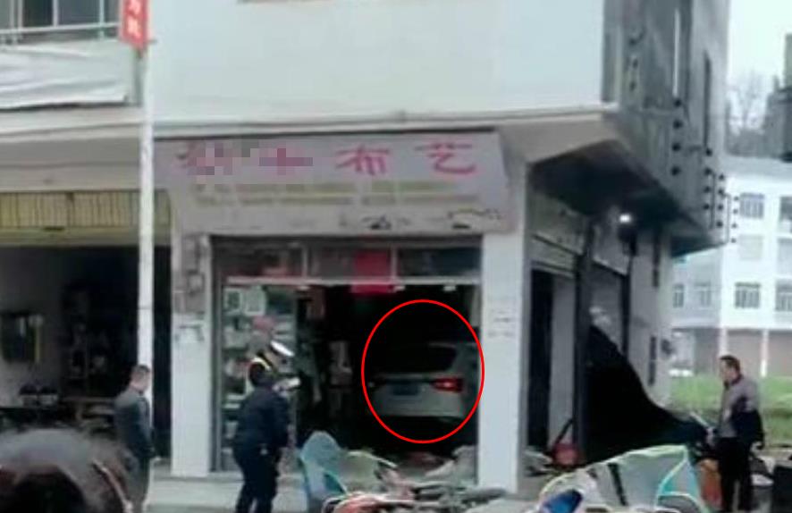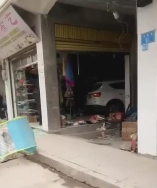 白色轿车“冲”进路边门店 现场一片狼藉
