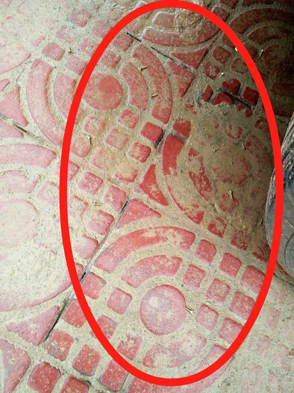 通过现场图片我们可以看到,地上到处都是约2厘米左右的铁钉,看着让人恐惧不已。