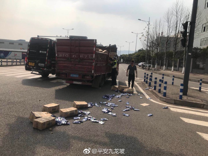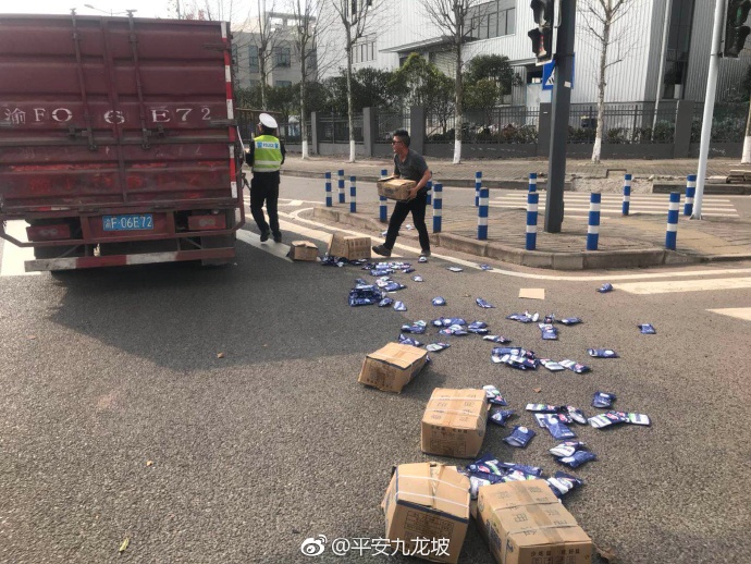 来自平安九龙坡官微的消息:3月16日下午3点,九龙坡含谷大队在金凤电子园附近巡逻时发现,一货车因货物固定不牢,导致成箱的洗衣粉洒落一地,正当货车驾驶员慌乱之际,路过的执勤民警随即变身搬运工,一边设立警示标志,指挥交通,一边帮助清理现场,经半个多小时额努力,最终货物被全部搬回车上。