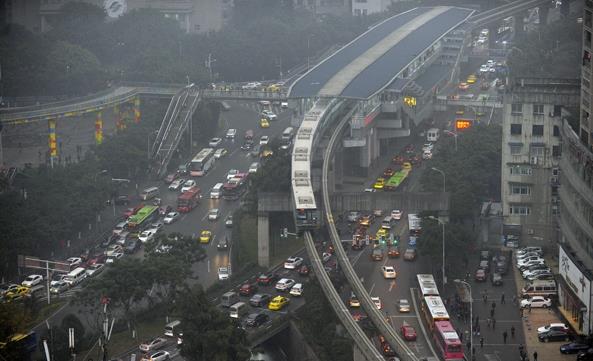 今天早上,厚重的云层积累在山城上空,浓雾久久未散,天气也显得更加阴冷,小雨让路面变得湿滑,增加了周一早高峰的交通压力,主城多出桥梁、立交、路段出现超过以往周一时的拥堵。专家提醒,雨雾天气使得视野降低,路面附着系数降低,制动距离变长,易发生侧滑、翻车等事故。雨中驾驶司机应降低车速,随时注意道路上的各种动态,及时做出正确判断,防止事故发生。行人因随时观察来往车辆,切勿猛跑、随意横穿马路。