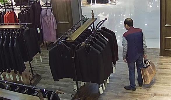 只见他利用衣服做遮挡,伸手取下其中一件皮衣,卷了两下塞进手提袋里,大摇大摆地离开了店铺。