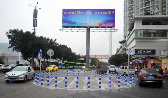由于九码头处于施工状态,该区域存在大货车较多、长滨路北向调头处调头车辆多、乱停车现象多、周边旅游客流量较大、行人安全无有效保障等交通秩序问题。为解决以上情况,渝中交巡警支队与相关部门研究,对九码头区域做出以下交通设施改善工作: