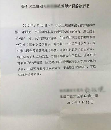 但是朋友圈和微信群依然在疯传这个视频,随后派出所的同志也到园里了解了情况。杨同学的家长还当面签了谅解书。