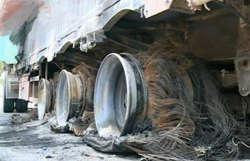重庆一大货车开成“火车” 12个轮胎被烧成灰烬