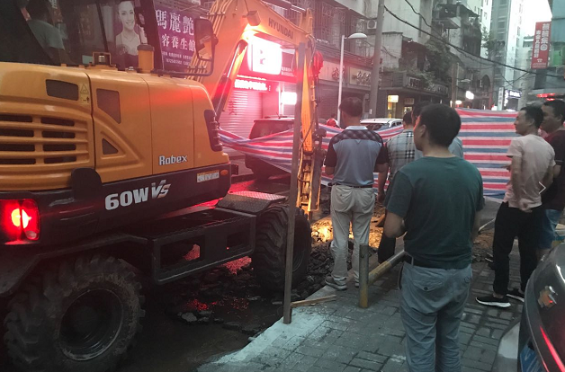 重庆一街道天然气管道被挖爆 整个街道都是臭味