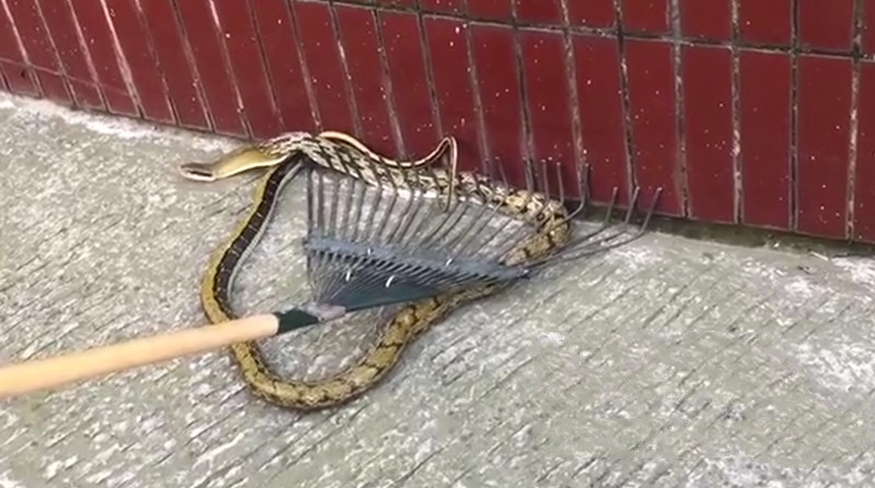就在大家束手无策的时候,平常给气象局食堂送菜的王师傅正好来单位送菜,看见这条蛇后,老王立马找来一把铁笆篱充当法海的钵盂将“小青”控制住,喊一名胆子稍微大一点的小伙子将铁笆篱压好,自己亲自上阵,一只脚踩住“小青”,徒手将捏住“小青”的七寸,将它生擒。蛇被抓住后,大家都松了一口气。