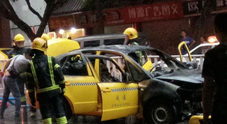 鱼洞一出租自燃 十分钟变成铁架子