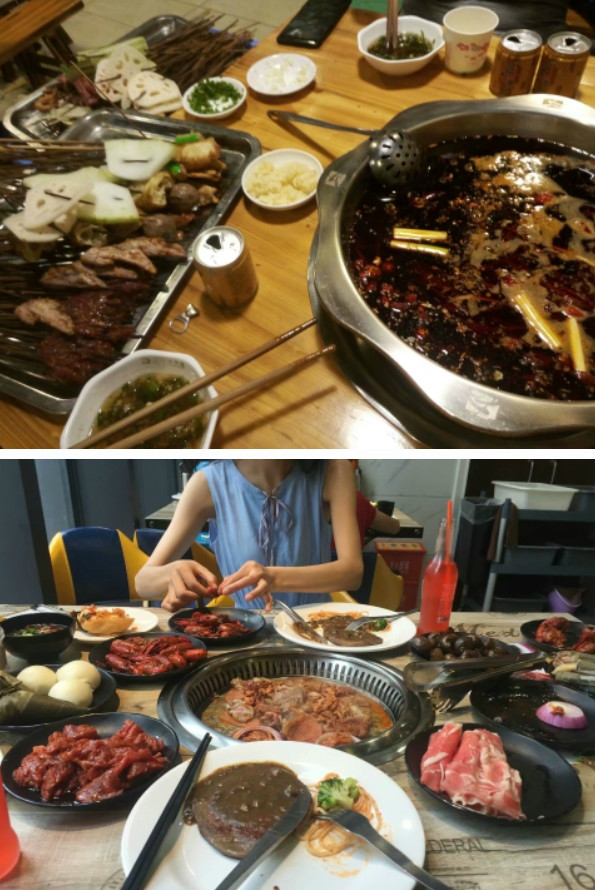 从网友发的照片看,果然吃的差别很大呀。一个是普通的家常菜,虽然清淡但是是家的味道,第二个牛排,龙虾,串串……妥妥美味的食物呀!