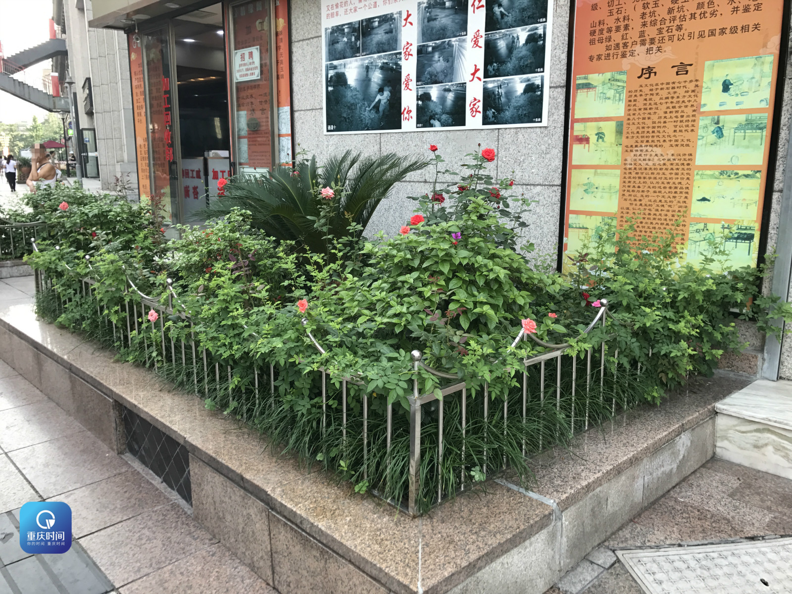 该珠宝店在店门口的花坛里自己花钱种上各种鲜花,不仅是为了店面更好看,也是为了响应“创卫”。(创卫是创建卫生城市的简称,卫生城市是一个城市综合功能和文明程度的重要标志,其中一项便是积极开展市容环境卫生整治)。