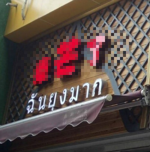 店家把“ฉันยุ่งมาก”(我很忙)写成了“ฉันยุงมาก”(我蚊子很)。