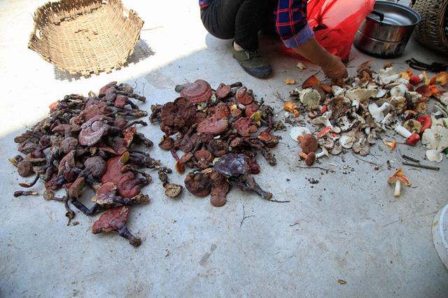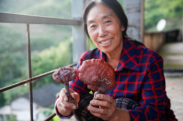 女子进山捡蘑菇 采回近五斤野生灵芝