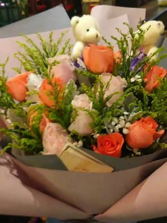 王小姐介绍说他(前男友)突然叫了一束花送到我上班的店里来,送花那个姐姐一脸笑地送过来。