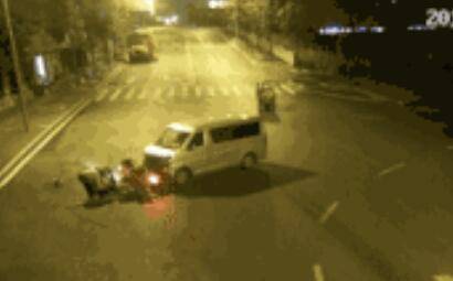 深夜两车相撞 摩托车乘坐人未带头盔受重伤