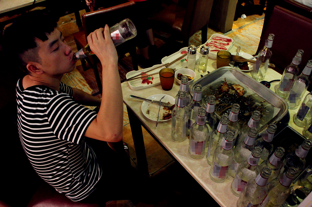 可眼前这位90后小伙一顿餐喝掉了200多瓶啤酒,不知算不算“啤酒正太”。