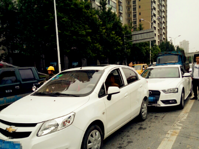 当开到东大街红绿灯的时候,因为自己想变道,便自顾自的开始了倒车,但因为没留意周边车况,把一辆白色奥迪车给撞了。
