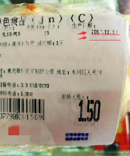 可掀开一层发现,里面的标签上写的生产日期是2017年11月11日,保质期也是1天。