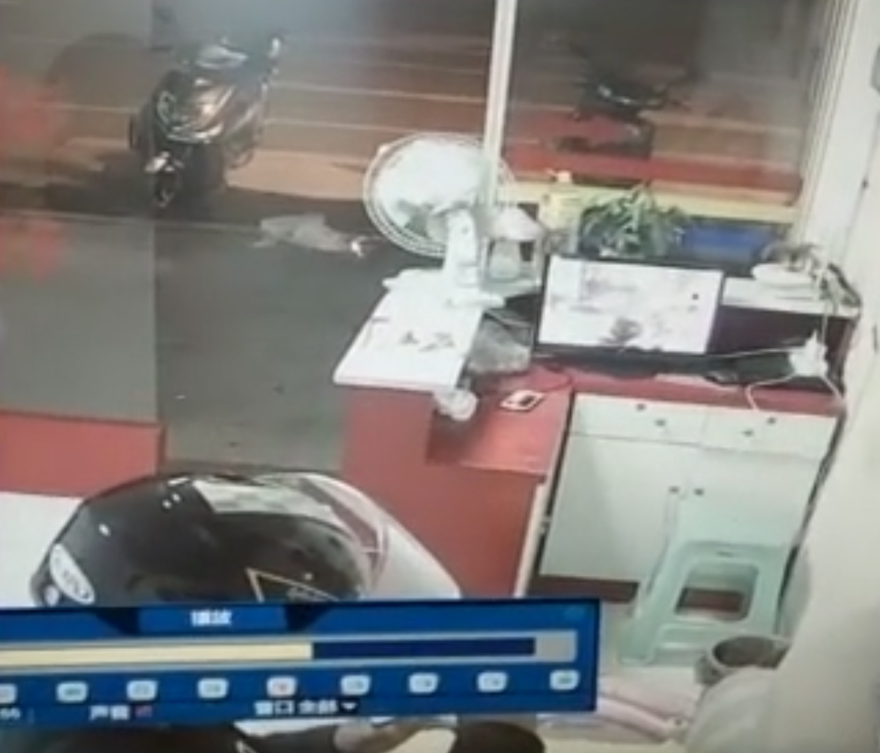 从监控画面中发现:2017年11月16日22点38分,一身穿黑上衣,头戴安全帽,骑着电瓶车的男子,大大方方地走进了这家足浴店内。
