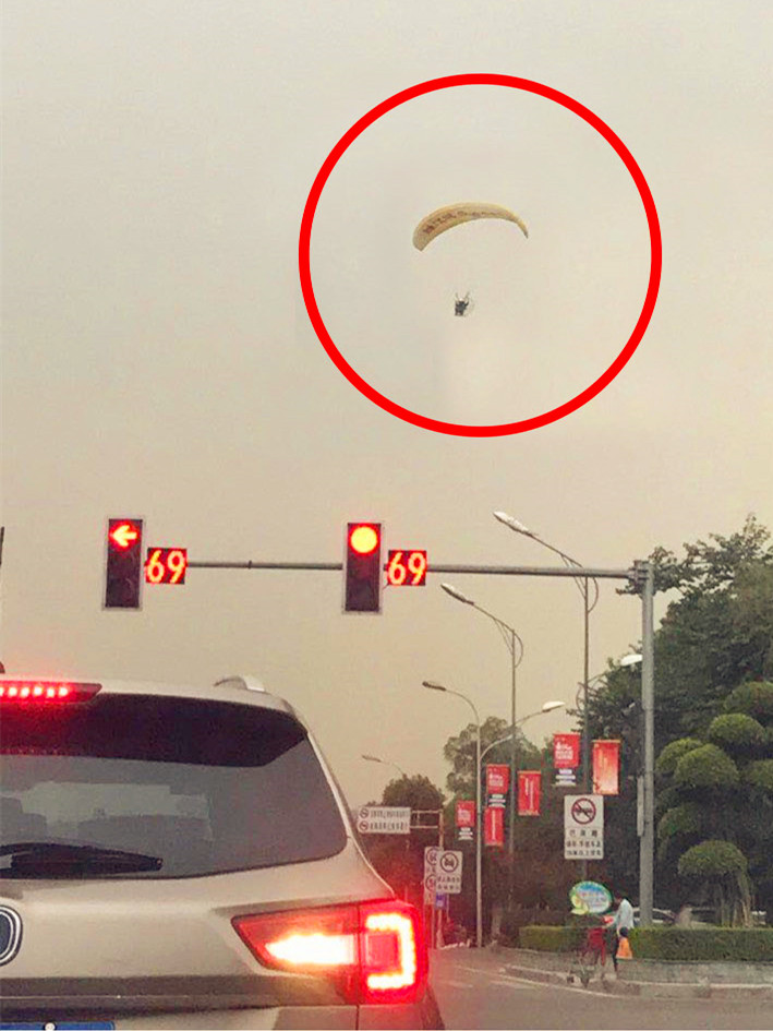 如果不小心偏离方向,后果不堪设想,看到滑翔伞的不少市民都为之捏了一把冷汗。