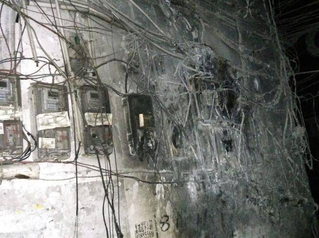 从消防队员们向上级汇报中得知,起火原因是因为过道墙上的一排电表箱发生电线短路故障导致的,从而引起地上停放着的3辆摩托车的油箱被点燃,火势随即扩大。