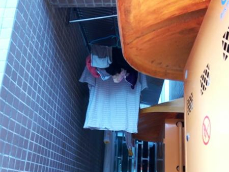 之前,罗女士和开发商为此跑了很多次但是都没有任何结果,邻居在雨棚下面肆无忌惮的晾刮了很多衣服,还有内裤袜子这些,将罗女士家的采光口挡得死死的。现在厨房处一片漆黑,往窗外一望,随时都能看到一片凌乱的衣物。