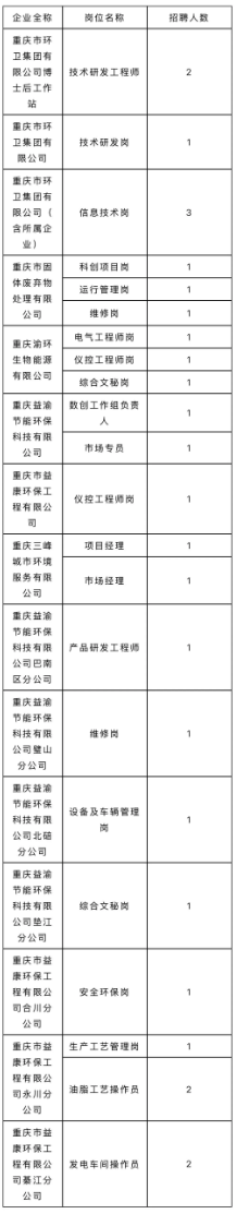 就业驿站 | 重庆市环卫集团,招27人!