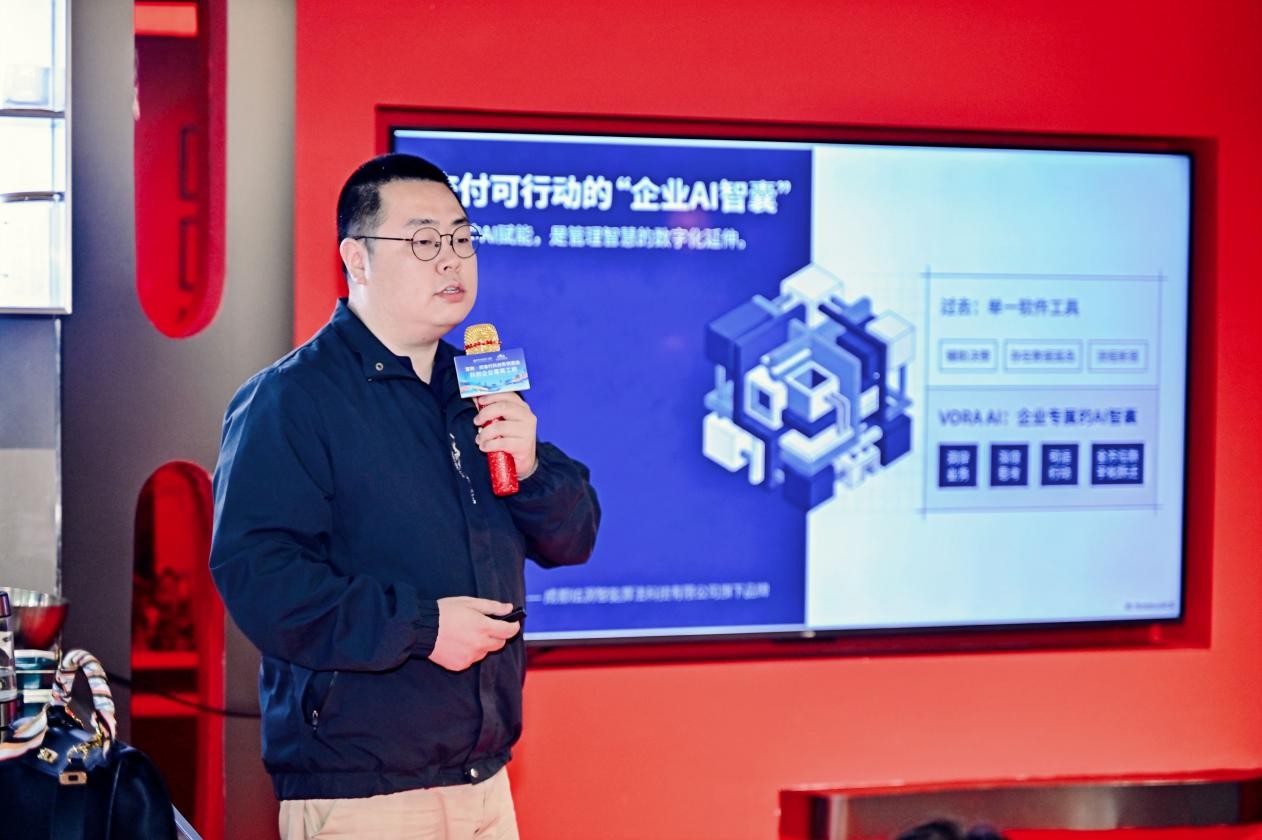 在核心分享环节,每位参会企业家依次上台,讲述并分享分享自己的项目与思考。内容围绕三个维度展开:项目是什么、在解决什么问题、现阶段遇到的问题和未来的市场发展前景。来自AI智慧影像、AI数智化发展、AI超智体、具身智能机器人、电子科技、AI智能管理、AI影视等不同赛道的科创项目依次亮相,信息密度高、风格务实,现场交流氛围浓厚。