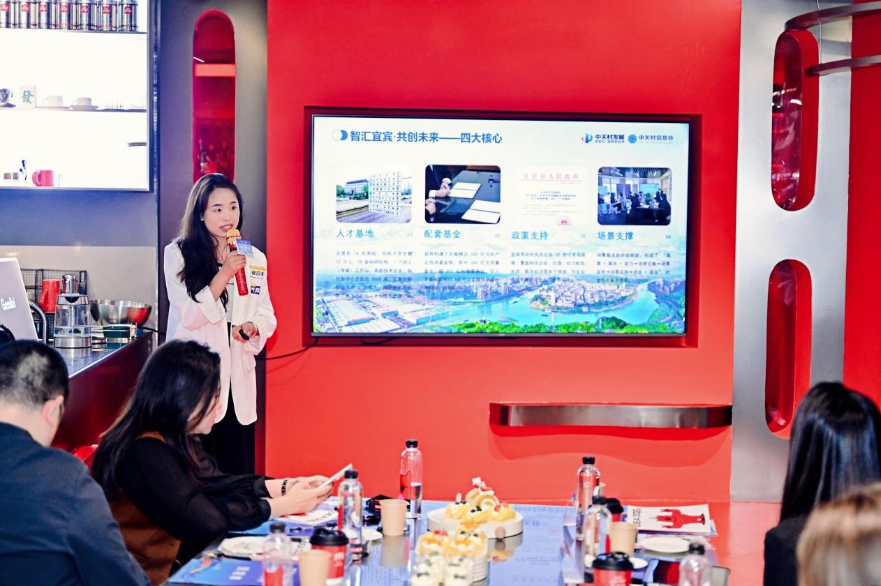 活动开始,宜宾信息谷科技服务有限责任公司代表王芹系统介绍了中关村信息谷的国家级科创品牌资源与宜宾市在人才、基金、政策、场景四大领域的一站式扶持体系,让参会企业对成渝宜协同发展通道有了更清晰的认识。