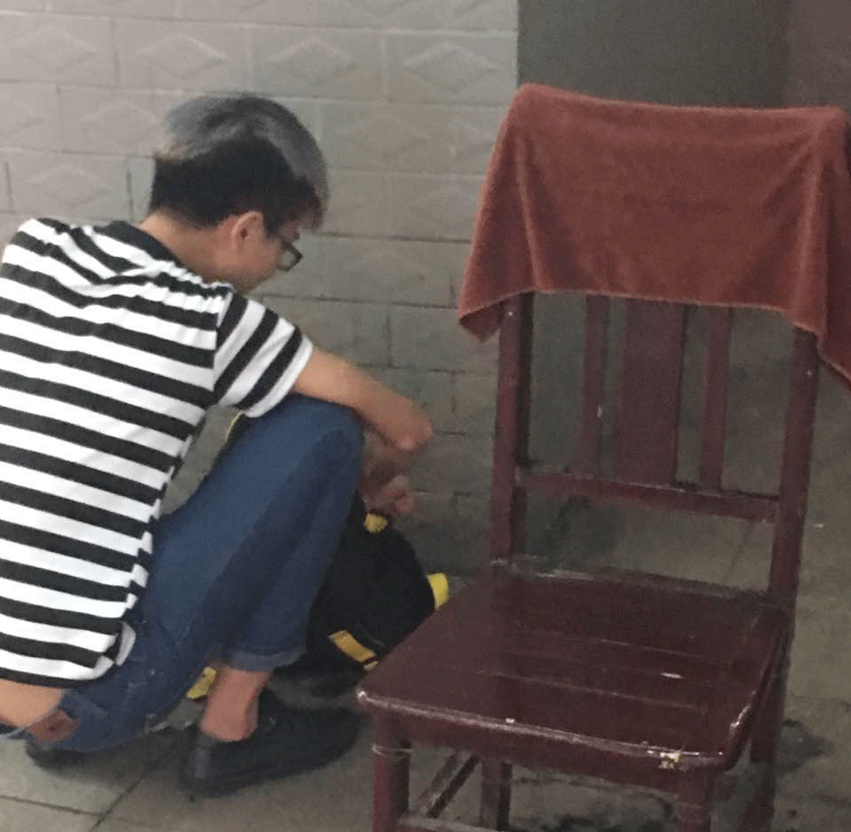 “明天我就不在这点了。”小伙子告诉温先生,他基本是每天换一个地点,“我明天在大南门,你可以过来剪头发。”小伙子说完,便笑着背着行囊离开了。