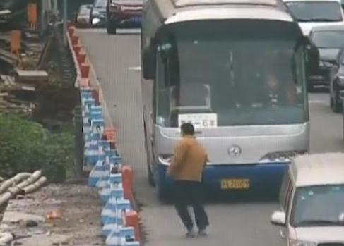 没想到,这边刚刚下道,一个小时后,车辆川流不息的内环快速上,再次出现了一名逆向行走的男子,巡逻民警立即调整监控,发现这名男子正在内环快速上,往高滩岩方向行走,由于没有注意到过往车辆,险些就被一辆客车撞到。