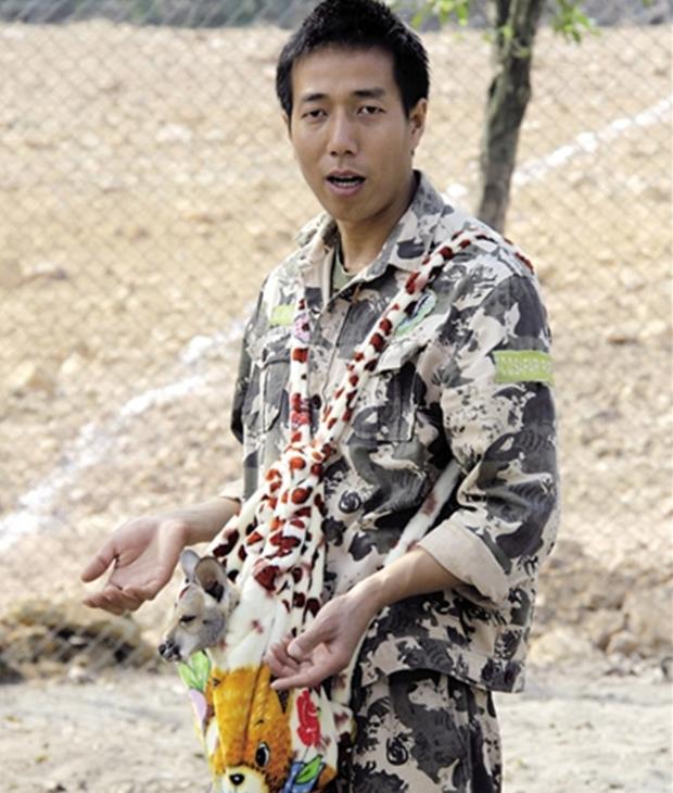 曾经因为园内的小老虎拉肚子,他像照顾孩子一样细心为其恢复;给鸸鹋喂食,他会有意地进行动物行为训练;为鸵鸟准备食物时,他细心理好每一份食物;为袋鼠拌料,仔细检查原材料,为它们健康保驾护航……