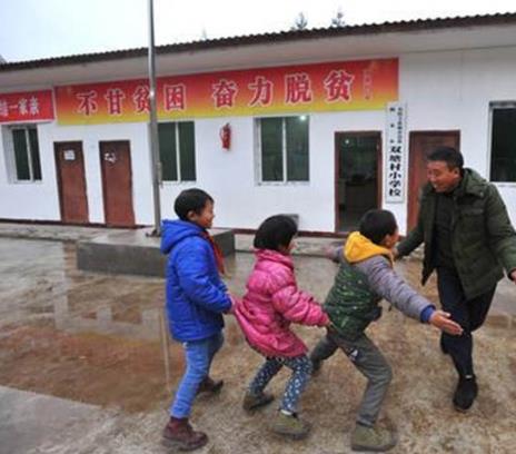 穿得有些泛黑的棉袄、朴实的棉拖鞋。他叫陈大明,是双塘村小学唯一的老师,在他身前,三张课桌呈“品”字型排开,三名学生聚精会神的拿着书本跟着老师朗读,三名学生也是这所小学仅有的三名学生。