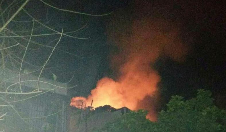 2月12日晚上8点左右,垫江县长龙镇朝阳村10组村民正在楼下摆酒席,二楼露台上的一处电线突然起火,引燃了露台上堆放的柴火,瞬间整个露台都烧起来了。垫江县消防大队桂溪中队接警后迅速赶到现场,积极参与灭火。