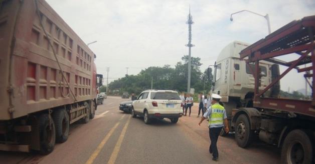 6月29日中午11时50分许,九龙坡交巡警支队含谷大队接到报警称在两辆小车在辖区界牌附近发生事故,两车受损且有人员受伤。