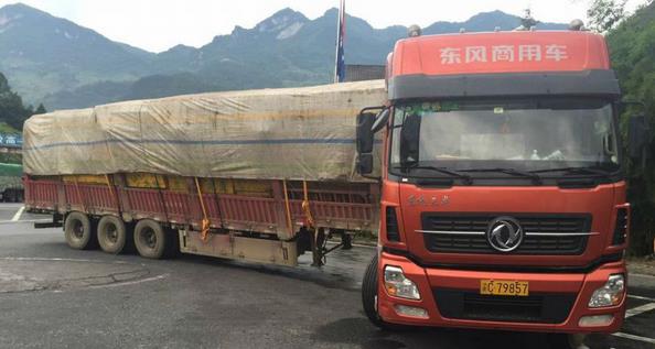当该重型货车刚进入彭水服务区,车身货物因加重倾斜,左侧部分车轮离开地面,车子彻底停摆,随时有侧翻的可能,情况非常严峻。