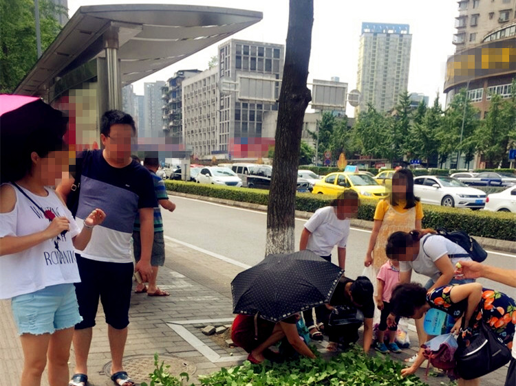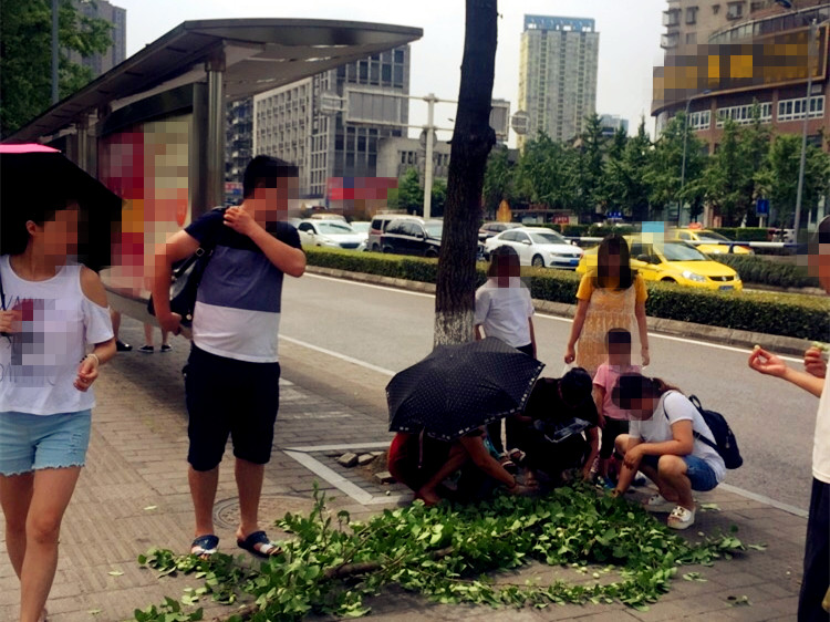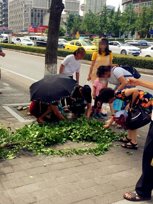 目击者称,他刚从车站边路过,就发现有人把路边的银杏树叶枝干砍了下来,竟然是为了捡银杏果吃。