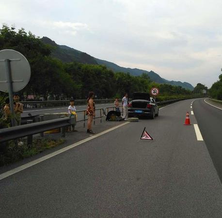 执法人员提醒:汽车在高速公路上遇到故障必须停车检查,停车后要确认后车有足够的安全距离,再打转向灯靠边,停在路肩上,打开双闪灯,白天在车后150米处设警示标志(三角反光牌),夜间则放置在车后200米以外。乘客全部离车,站到右侧护栏的外面,不要站在车边围观,更不能坐在车里。