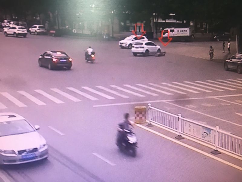 9月5日下午六点半左右,在南川金山大道泰园路口,一辆直行的小车突然左转,其右侧直接撞上了直行的电动车,车轮与被撞者头部“亲密”擦过。