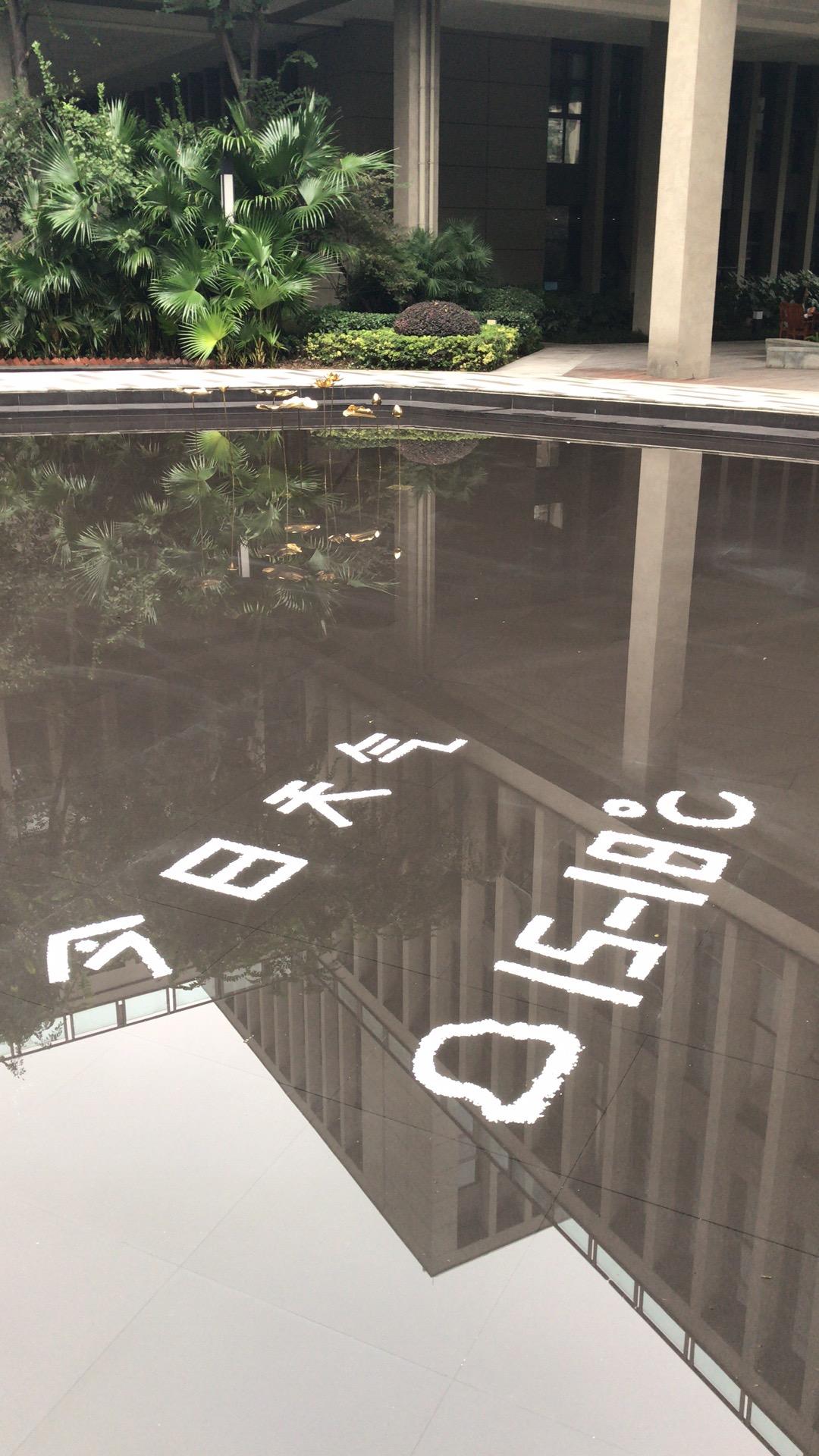 通过图片可以看到,水池中“今日天气”四个白色大字清晰可见,在其下方,还有多云的标志,旁边则显示的是今天的温度15—18℃。