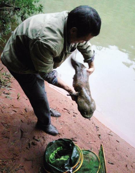 10月25日,家住江津中山镇龙塘村的村民官师傅在上河雅舍小区附近的高升桥下,用钓鱼竿钓起一条20多斤重的娃娃鱼,这让他惊喜交加。