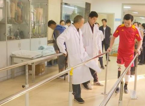 当天上午九点,在西南医院假肢康复训练厅里,徐前凯在假肢装配师的帮助下,成功装上假肢,并在治疗师的指导下,开始了适应性康复训练。