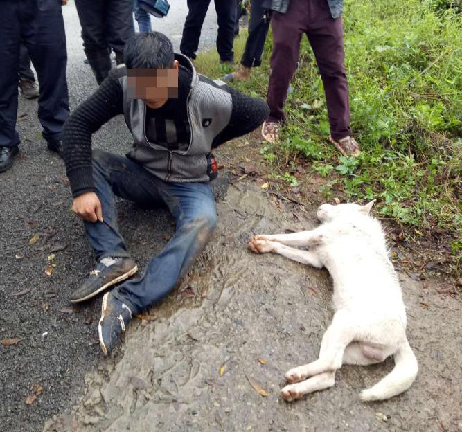 11月18日下午4点过,大足警方接到报警称,在大足区龙水镇黄泥村有人偷狗。接警后,龙水派出所民警立即赶往现场。民警到达现场,发现公路边已经站有不少围观群众,大家正责骂着坐在人群当中的一名中年男子,中年男子身旁还倒着一条一动不动的犬只。