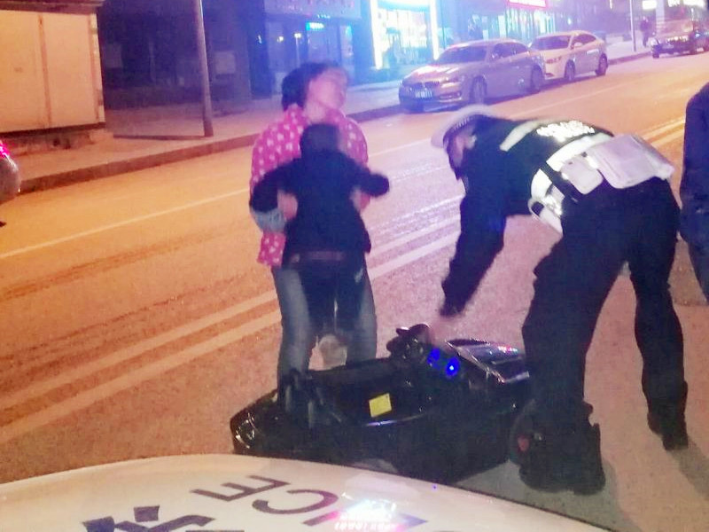 三岁孩子开玩具车上路 “熄火”民警及时发现排险情