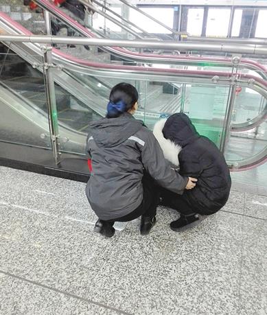 “当天下车后,我看见一位穿黑衣服、戴口罩的小姑娘瘫坐在地上,像是生病了。” 向女士回忆,当时正值下班高峰期,人来人往的,她这样坐在那儿很不安全。正当向女士想上前帮忙时,一位站务人员发现了女孩,立马上前询问,并迅速喊来同事帮忙。